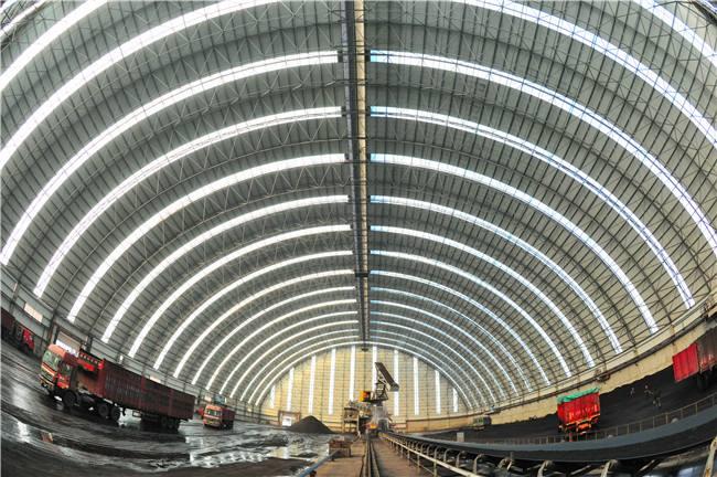 堆场料场封闭式主体结构为新型的钢高平网架结构,维修结构为高平钢结构高平不锈钢板和纤维增强塑料灯具,其外形以高平网架式和平板为主,连接柱高平施工自由,设置喷雾自动喷水系统,从而可以实现棚内所有物料的覆盖,减少物料在运输过程中的损耗,起到防尘的作用,减少工厂关闭后的二氧化硫排放量,50mg/m3颗粒排放量小于10mg/m3,非常适合低能耗。低闭库自动感应反应对库存轮胎进行清洁,确保轮胎不受道路污染;封闭的储存区可从源头控制粉尘污染,控制无序排放。